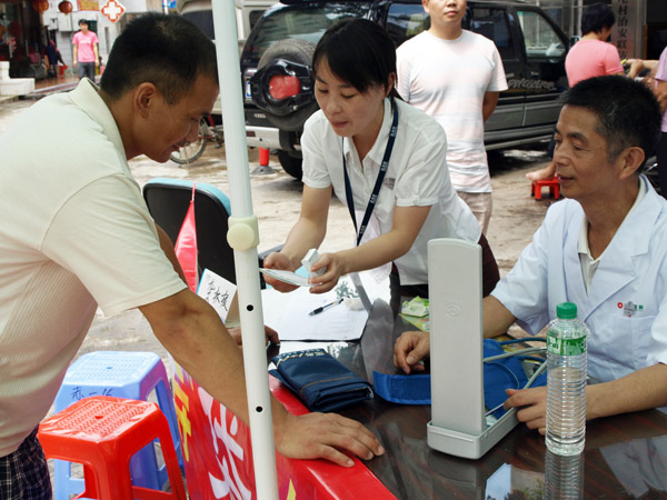 本次活动12个活动场地遍布深圳关内关外,国康领导非常重视,大家早早就到达各自的指定社区。虽然近段时间的连续暴雨给布置现场带来了麻烦,但大家克服困难,有条不紊的开展工作,国康全体员工良好的精神风貌和精湛的业务水平给国寿的领导留下了深刻的印象,对国康给予了充分的认可和称赞。